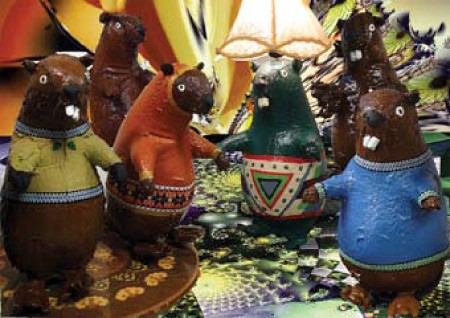 en Garfunkel, vol gepapiermachéde bevers met lampenkappen