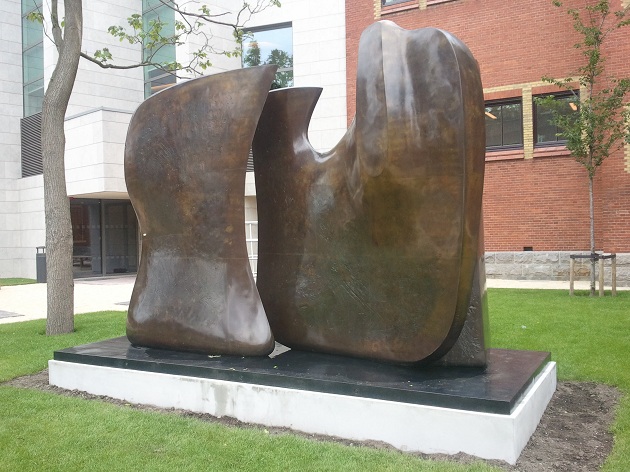 Henry Moore, t/m 29 september 2013 in de tuin van het Rijksmuseum, Museumstraat 1, Amsterdam. Dagelijks 9-18u. www.rijksmuseum.nl (foto: Knife Edge Two Piece, 1962-65, brons) |