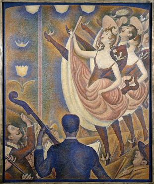 Net als zijn impressionistenvrienden legde Seurat graag het moderne Parijs vast - treinen, stoomschepen, een onaffe Eiffeltoren die hij liet baden in pointillistisch fonkelende zonlicht. 's Zomers ging hij naar de kust om zich 'te bezatten aan het licht' wat verlaten en zonovergoten havengezichten opleverde die ook Helene Kröller-Müller aankocht - beter dan Le Chahut aansluitend op haar meditatieve smaak.