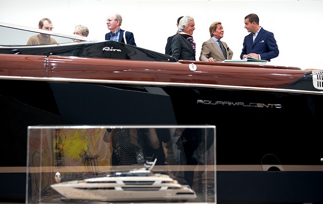 (foto's: Elmgreen & Dragset, het Scandinavische duo dat bij de expo in de Onderzeebootloods zich outsider in de kunst zei te voelen was met 2 grote installaties vertegenwoordigd op de Frieze. Foto onder: Christian Jankowski 'The Finest Art on Water').
