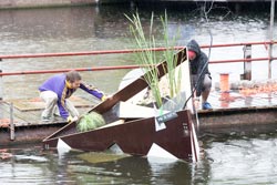 Galerie op de Rotte, 'Waterworld', tot eind september 2009, Zaagmolenkade Rotterdam. www.galerieopderotte.nl (foto's Galerie op de Rotte: detail Curving Place, kunstproject studenten; bouwen van Habitat op de Rotte, project Versch)