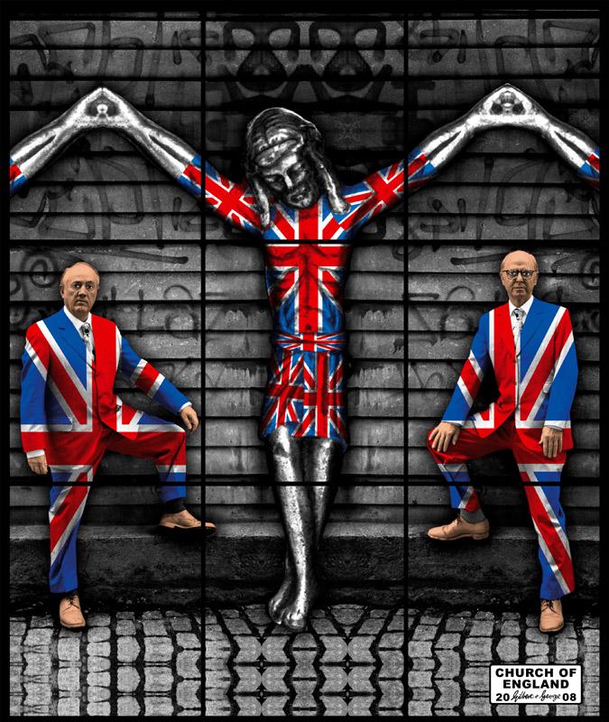 Tentoonstelling: Gilbert & George / Jack Freak Pictures , t/m 23 januari 2011 in het Bozar, Ravensteinstraat 23, Brussel. Di-zo 10-18u., do 10-21u. www.bozar.be (foto: Gilbert & George, Church of England, 2008)