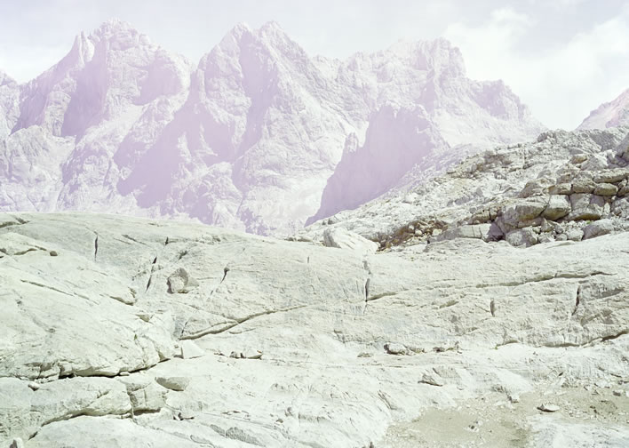 Hoeveel de wereld is veranderd sinds Watkins' tijd, blijkt uit de recente Alpenfoto's van de Zwitser Jules Spinatsch: skiliftjes, pistes, led-schermen met reclameshows. Bergen, ooit grootheden die de mens wilde bedwingen, zijn verdwenen onder biercommercials. Een ruwe bergwand is alleen nog te zien op een foto die Spinatsch muurvullend uitvergrootte: een sneeuwwand met daarop de schaduw van een olifant. Het is een opname uit een Tiroler lasershow over Hannibal die met zijn olifanten de bergen over trok - de man is nooit in de buurt van Tirol geweest maar who cares .