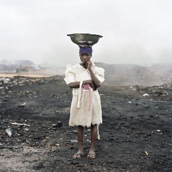 De moraal is helder: onze verantwoorde afvalscheiding is niet zo keurig. Het verwoest levens. Maar Hugo's foto's zijn niet enkel een aanklacht. Ze zijn ook mooi. Hij portretteert mooie mensen met glanzende lijven in een zwartgeblakerde wereld. Grote rookpluimen stijgen dramatisch op. Eén van de vuilniszoekers draagt een puntgaaf zachtroze overhemd op een satijnen rok - tussen het afval is soms designkleding te vinden. Pratend in een mobiele telefoon, elegant leunend op een vermolmde kar, zou deze tragische persoon zo in een edgy modereportage passen. Deze postapocalyptische, dramatische schoonheid vangt Hugo in grote vierkante composities die hij strak wit inkadert. En tegelijk is het wel heel cynisch om deze gruwelijke foto's mooi te vinden. Hugo's Afrika is een ingewikkelde wereld.