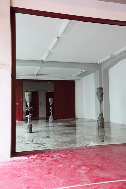 Toch is het niet zo dat de galerie gehaast is opgedoekt: dit is natuurlijk een kunstproject. De Venetiaanse kunstenaar Giorgio Andreotta Calò maakte drie afgietsels van de geërodeerde palen waar zijn stad op rust. De bekende verhalen dat Venetië langzaam zinkt, worden zo ineens heel reëel. Vorig jaar op de Rijksakademie bouwde hij een extra raam, dat werd versperd door herfstbladeren. Calò houdt van verwarrende statements over binnen en buiten, waarbij hij architectuur ontmantelt om installaties te bouwen over stilte en verval.