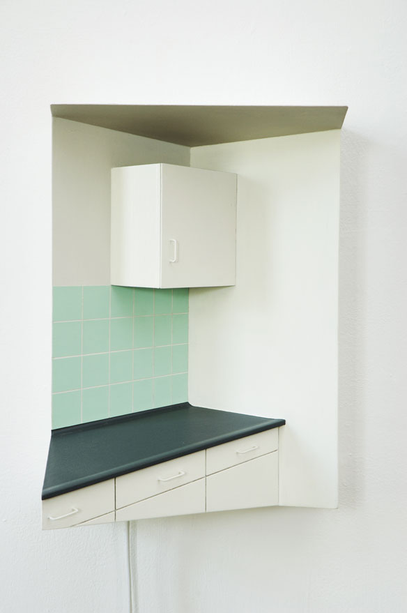 interieurs en drie tekeningen op lichtboxen. Zehangen er in een