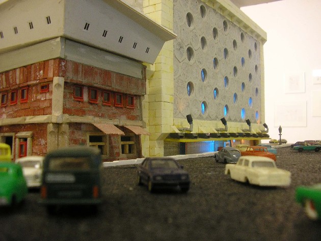 van lego en ijzer, huizen van bouwafval en plastic, autootjes, lampjes