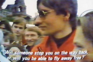 een Cessna op het plein landde. In het vliegtuigje zat Mathias Rust.
