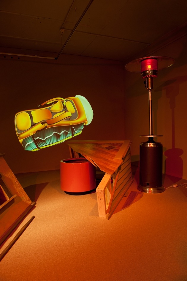 Maar deze film trekt wel echt alle denkbare effecten uit de kast: de meisjes dragen schmink en pruiken, worden omgeven door glitters, vervormd met special effects. Het is de center piece van de tentoonstelling van Ryan Trecartin, Lizzie Fitch en Rhett LaRue in Showroom Mama. Dit zijn drie jonge Amerikaanse kunstenaars met een gezamenlijke hobby: warenhuizen en bouwmarkten afstruinen. Hun objets trouvés uit de koopjescorners stallen ze uit in Mama: vazen van twee dollar, sierkussens met een goudprintje, nepbont, of een oorspronkelijk wel sjiek burberryruitje. Dit is de materiële kant van de American Dream: iedereen kan zich omringen met de luxe van massaproductie.