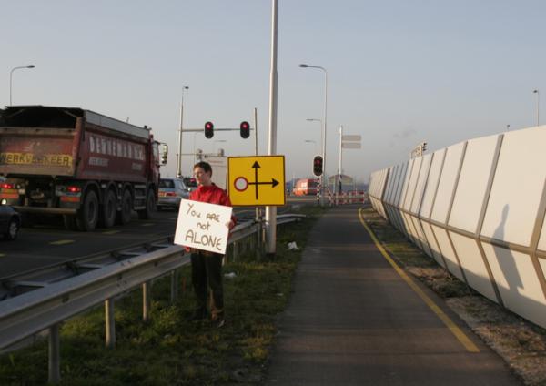 met de tekst 'You are not alone', bedoeld om automobilisten aan