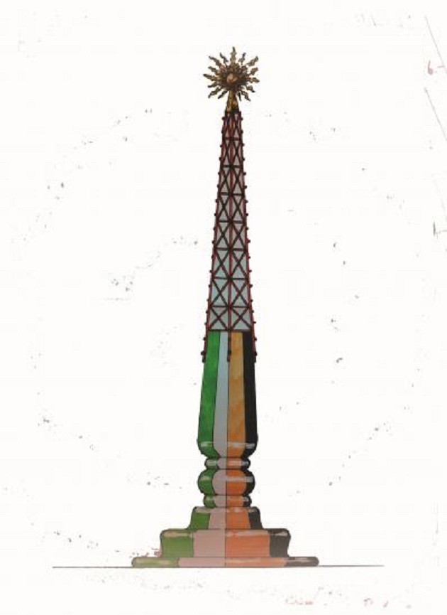 Samen met het Centrum Beeldende Kunst Rotterdam kozen migrantengroeperingen voor de meest klassieke vorm die denkbaar is: een sculptuur in de vorm van een obelisk, een naald, een overwinningszuil, die vroeger verrees na oorlogen om een overwonnen land te markeren. Dit ironische ontwerp is van de Rotterdamse kunstenaar Hans van Bentem. Hij mixte symboliek en exotica in een kleurrijke zuil van bijna negen meter hoog, in acht kleuren steen - symbool voor de acht gastarbeiderlanden. Het steen gaat over in een metalen structuur die doet denken aan industrie, de haven, en wordt bekroond door een zon. Het is de aanvulling op de maan uit veel vlaggen van herkomstlanden, én is een knallende markering. De wens om een onzichtbare groep zichtbaar te maken, heeft Van Bentem letterlijk opgevat.