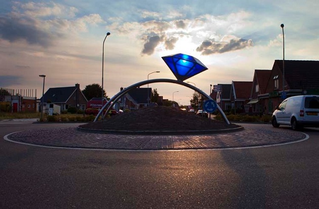 Overal zie je ze, rotondes om de verkeersveiligheid te verbeteren. Ze zijn een goede plek voor een kunstwerk, van een erkende kunstenaar, of zomaar iemand met een idee.