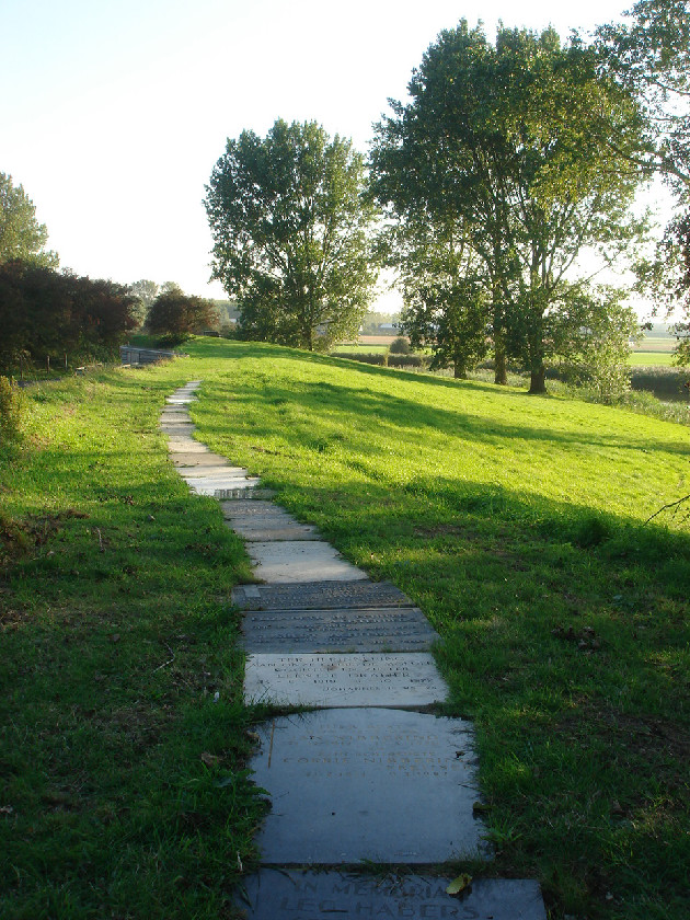 Van Houwelingen wilde de doden meer tijd geven en noemde zijn pad 'Sluipweg, waarlangs de dood heeft weten te ontsnappen'. Hij raakte er een juiste snaar mee, want controverse bleef uit en na een oproep in de media ontving hij van nabestaanden meer zerken dan hij kon plaatsen. Vooral zijn het stenen van mensen die lang dood zijn en misschien alleen zo nog wat betreurd worden. Maar er liggen ook zerken tussen van pasgestorvenen. 'Saggy 2004' staat met een lief vlindertje gebeiteld in een klein grafsteentje. Samen vormen ze een grillig slingerpaadje met uitzicht op de einder, de perfecte plek voor bespiegelingen over dood en leven.