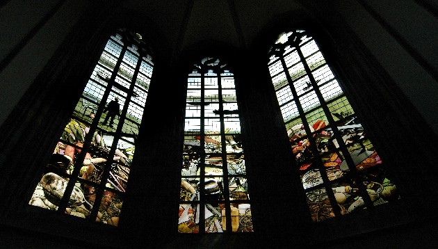 drie ramen die de kapel telt, gebruikte hij voor een monumentaal