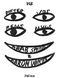 In de oeuvrecatalogus Arab Spring And Aaron Winter van ontwerpbureau 75B is te lezen dat deze publicatie niet gemakkelijk tot stand is gekomen. Het moest steeds over, staat in de bijdrage van Pieter Vos. Het boek is een terugblik op vijftien jaar vormgeven en blijkbaar viel het niet mee om daarover een publicatie te maken die niet meteen wordt weggelegd omdat het te fluffy is of juist te pretentieus. Pieter Vos en Rens Muis, oprichters van het bureau besloten een andere vorm te kiezen, want het geven van vorm, letterlijk, is wat vormgevers doen. Dat werd dit keer een novelle, de vorm van literaire dromers, en van een alfabet, een literaire vorm die veel gedijt op bruiloften en partijen. Daartussen duwden ze een indrukwekkende berg beelden, als een plakboek van iemand die zijn hoofd boven het papier heeft leeggeschud.