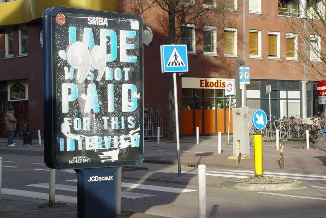 in de abri's van Amsterdam, maar die werkt niet. De drie posterontwerpen