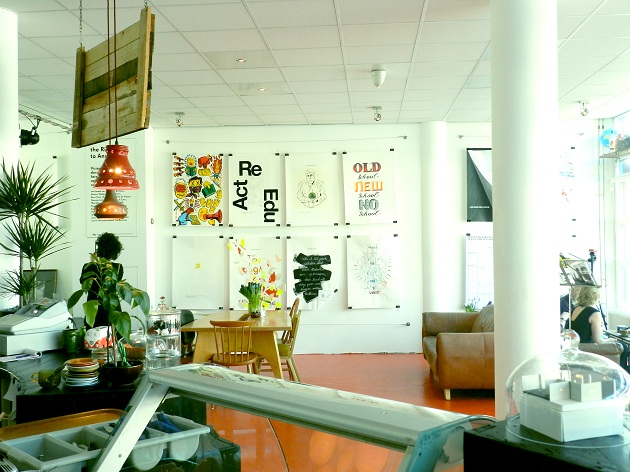 RAAF is een levendige aanwinst voor de wijk. Het opent met een tentoonstelling die er net zo kek uitziet als de bric-a-brac styling van hun galerie annex lunchroom. "Eten verbindt," weten oprichters Ashley Nijland en Coen van der Steen. Bezoekers treffen er een openingstentoonstelling over educatie, waar een druk randprogramma bij hoort met radiomakers en meer. De expositie bestaat uit zeventien posters van jonge Rotterdamse ontwerpbureaus. Twee andere ontwerpers, Saskia Pouwels en Hanneke Minten, vroegen hen om een poster met de kreet 'The Right to Answer' verder uit te werken. OONA tekende er kantlijndroedels en songteksten op ('we don't need no education'). VosBrenner maakte een overzicht van wereldwijde scores op analfabetisme. Thijs Lansbergen ontwierp een aloude actieposter, compleet met megafonen, prikkeldraad en brandende pennen.